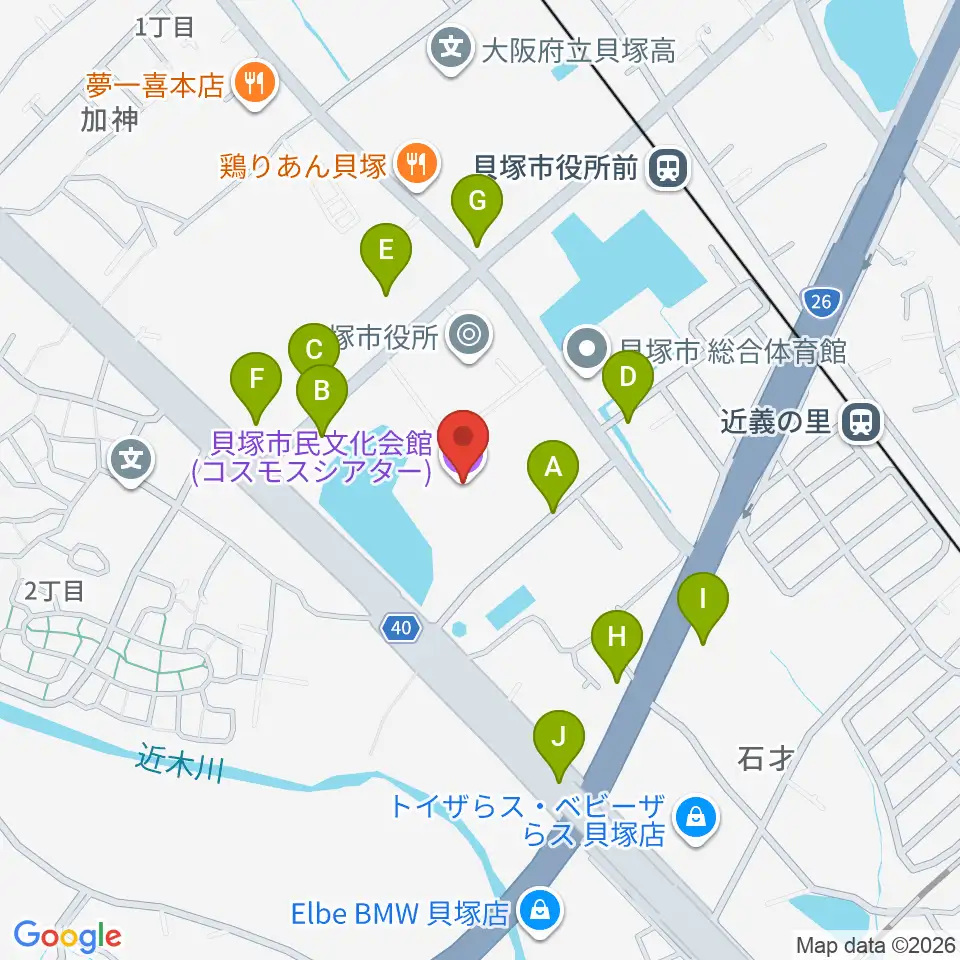 貝塚市民文化会館コスモスシアター周辺の駐車場・コインパーキング一覧地図