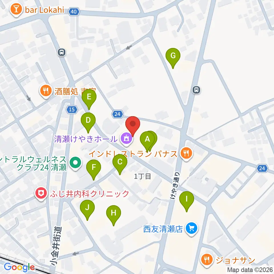 清瀬けやきホール周辺の駐車場・コインパーキング一覧地図