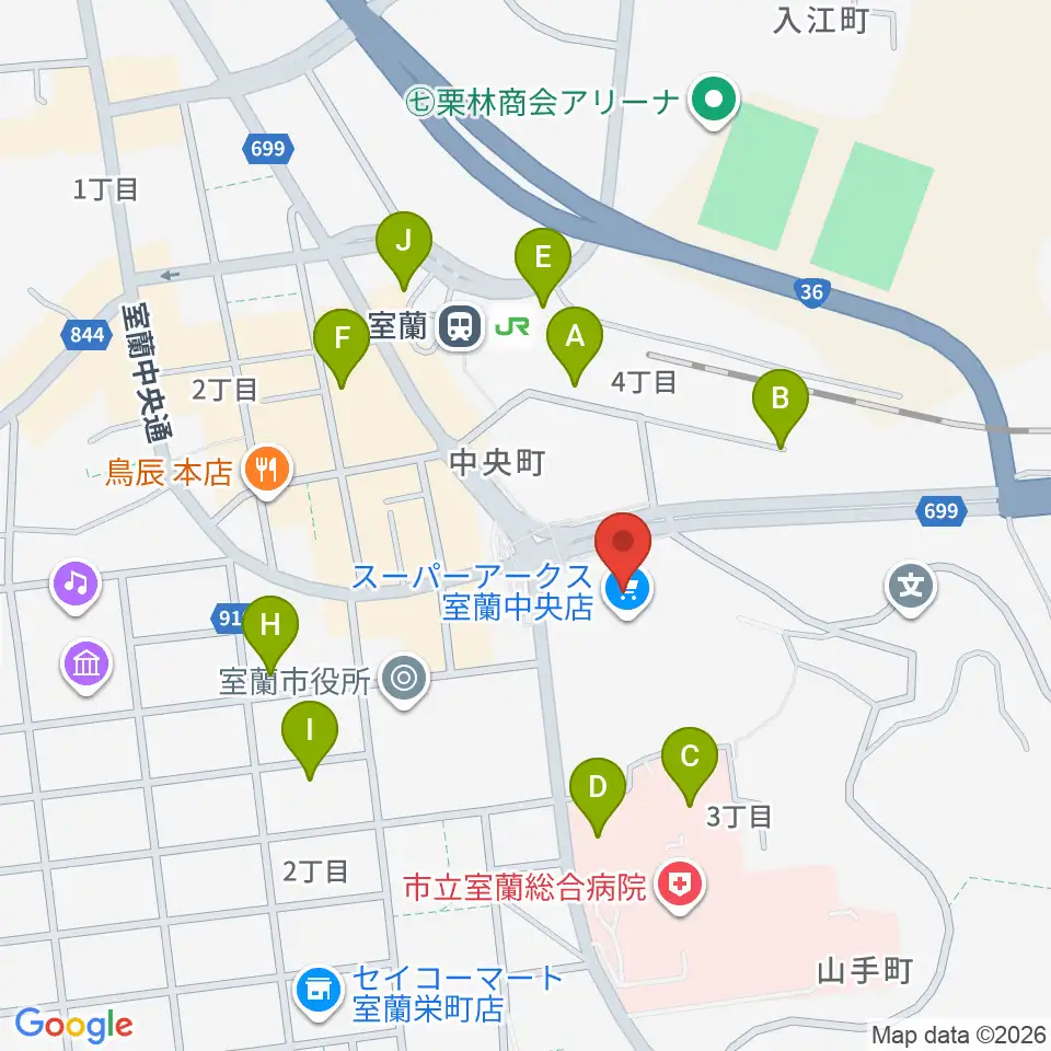 エルム楽器 スーパーアークス室蘭中央センター周辺の駐車場・コインパーキング一覧地図