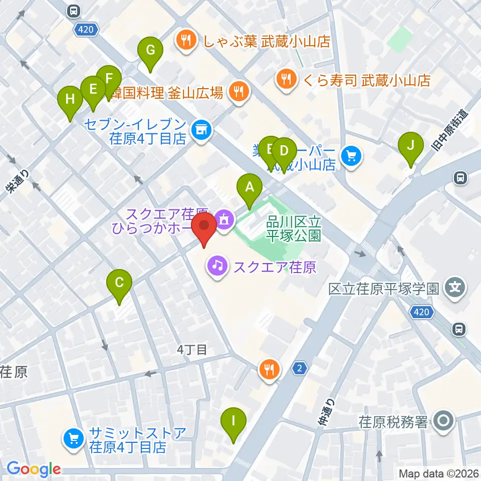 スクエア荏原 ひらつかホール周辺の駐車場・コインパーキング一覧地図