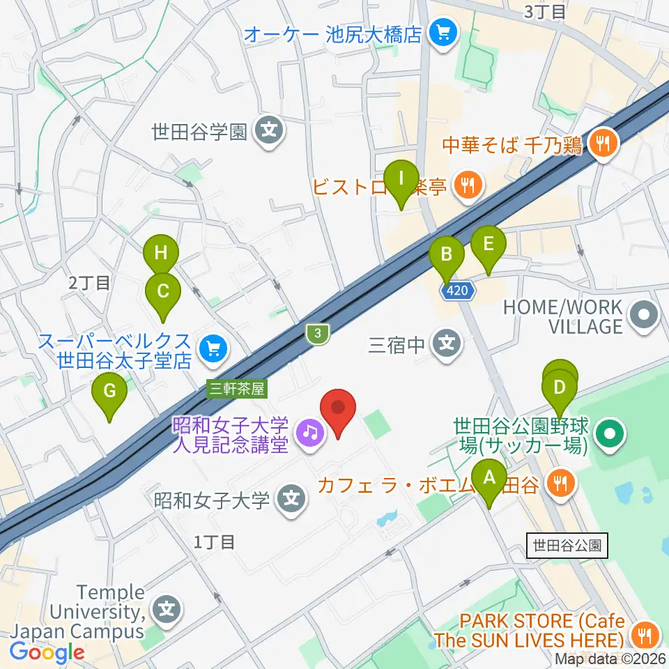 昭和女子大学人見記念講堂周辺の駐車場・コインパーキング一覧地図