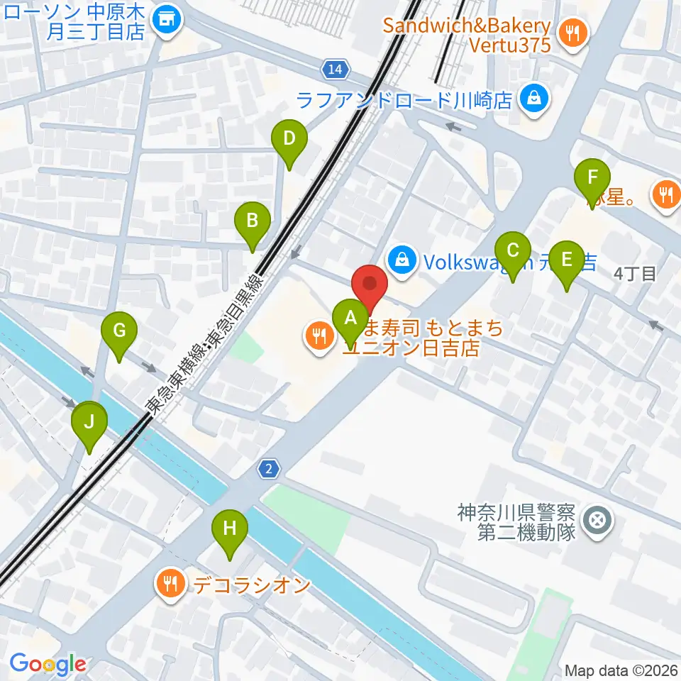 有隣堂 日吉ミュージックセンター周辺の駐車場・コインパーキング一覧地図