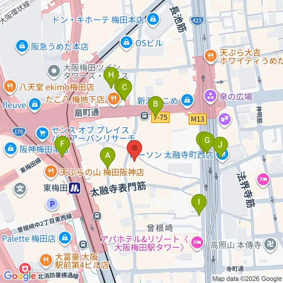 梅田アムホール周辺の駐車場・コインパーキング一覧地図