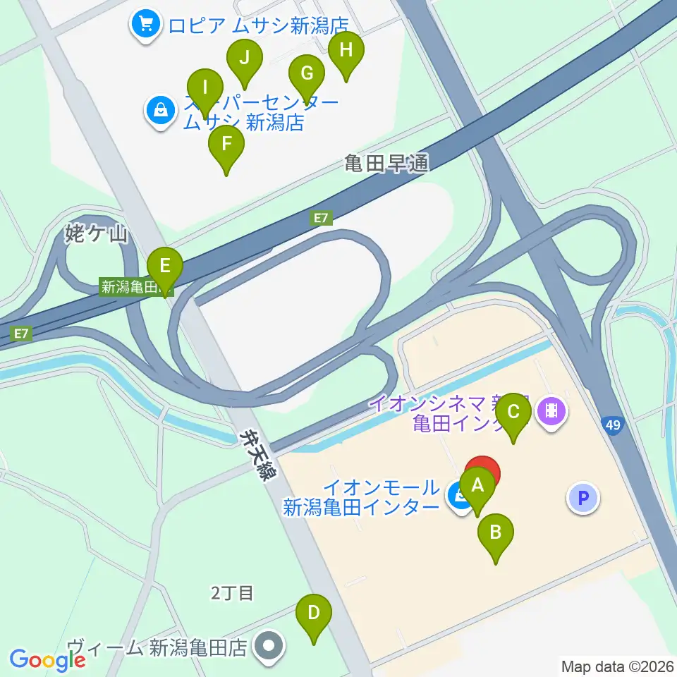 JEUGIAカルチャーセンター イオンモール新潟南周辺の駐車場・コインパーキング一覧地図