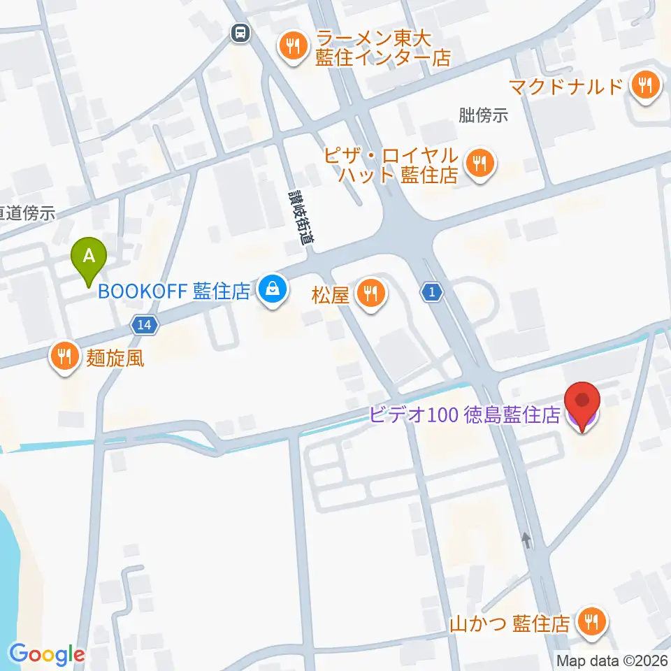 ビデオ100 徳島藍住店周辺の駐車場・コインパーキング一覧地図