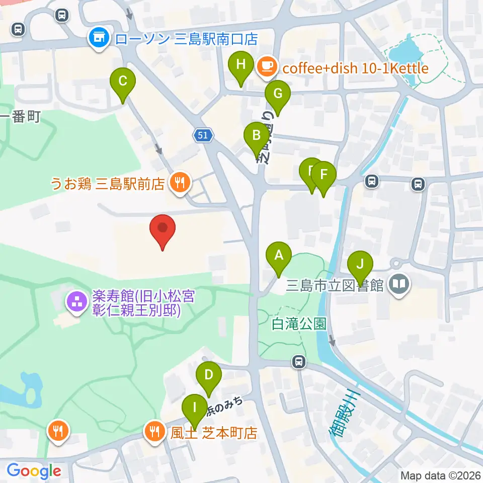 三島市民文化会館 ゆぅゆぅホール周辺の駐車場・コインパーキング一覧地図