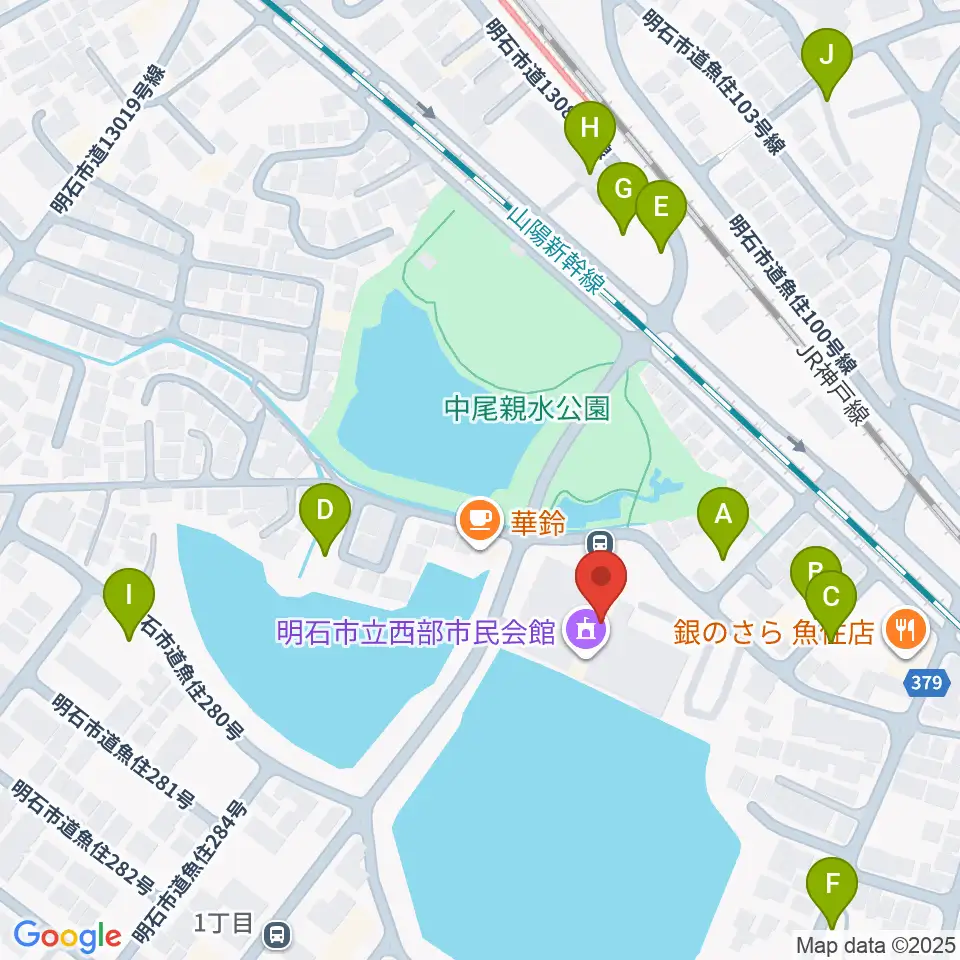 明石市立西部市民会館周辺の駐車場・コインパーキング一覧地図