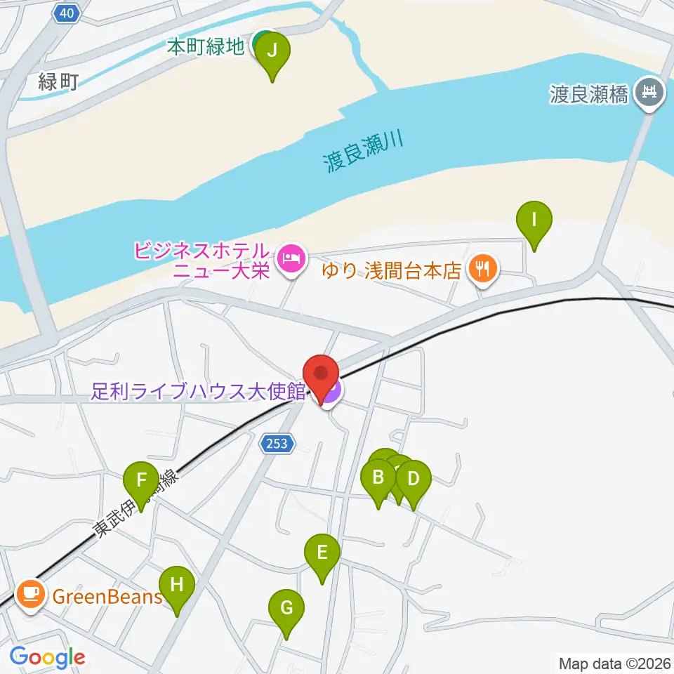 足利ライブハウス大使館周辺の駐車場・コインパーキング一覧地図