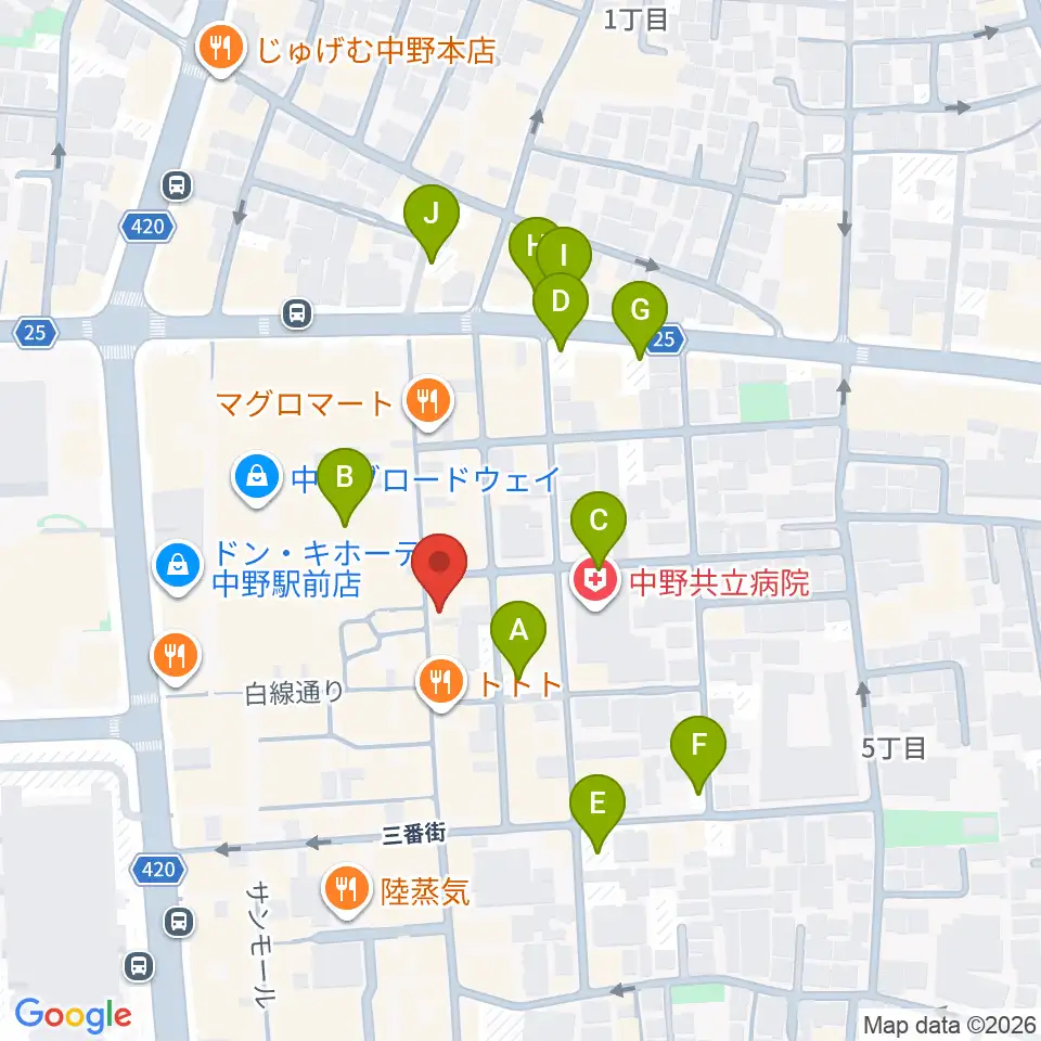 中野JET BAR周辺の駐車場・コインパーキング一覧地図