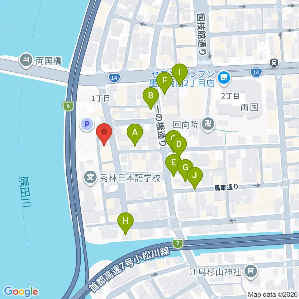 両国門天ホール周辺の駐車場・コインパーキング一覧地図