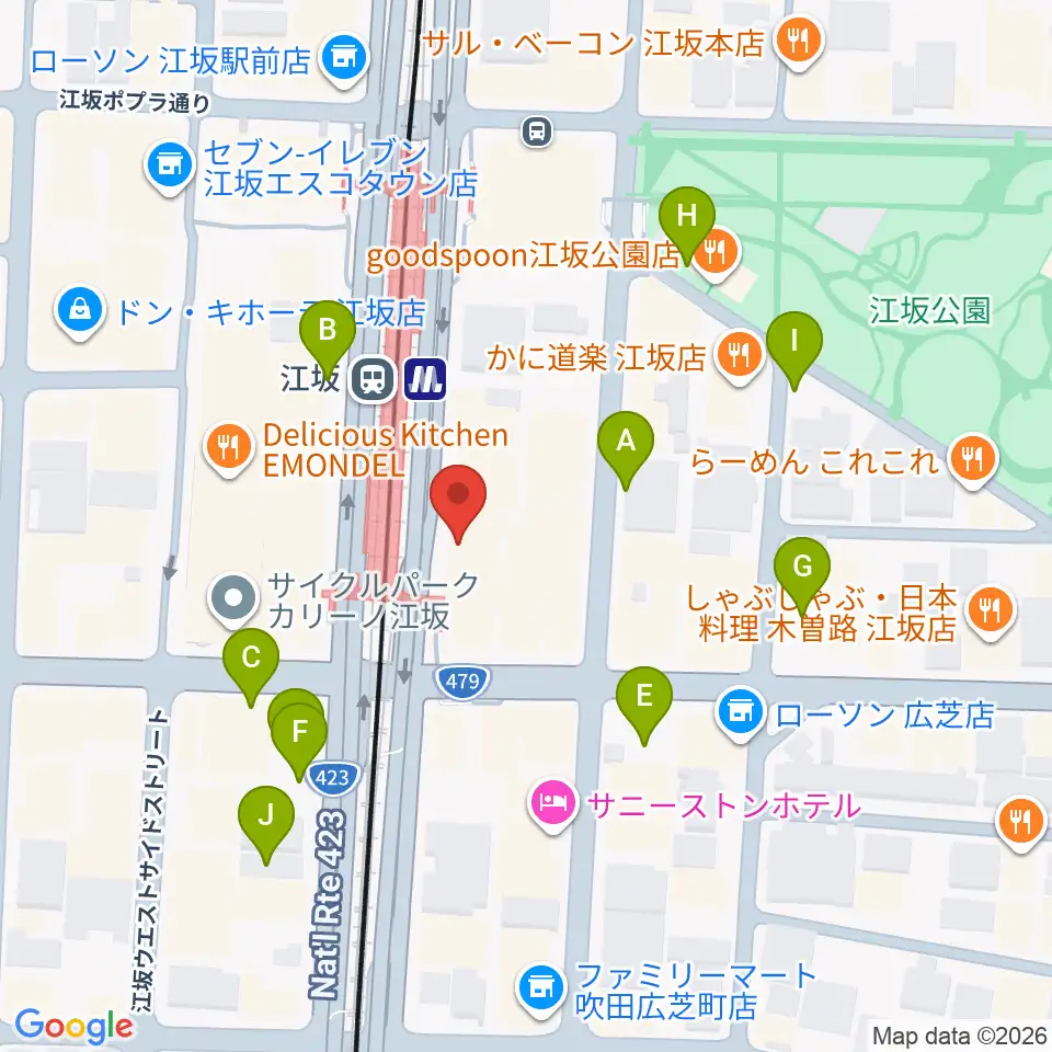 ドルフィンギターズ大阪店周辺の駐車場・コインパーキング一覧地図