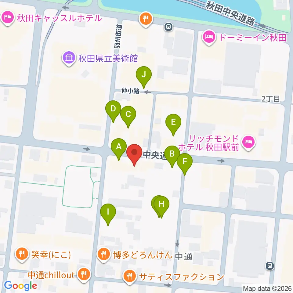 ヤマハミュージック 秋田店周辺の駐車場・コインパーキング一覧地図