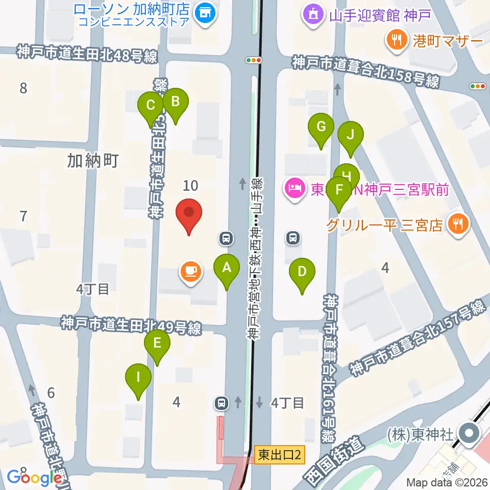 ヤマハミュージック 神戸店周辺の駐車場・コインパーキング一覧地図