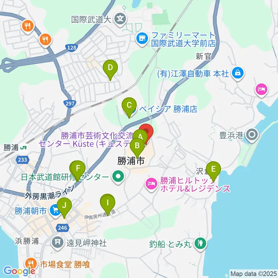 勝浦市芸術文化交流センター キュステ周辺の駐車場・コインパーキング一覧地図