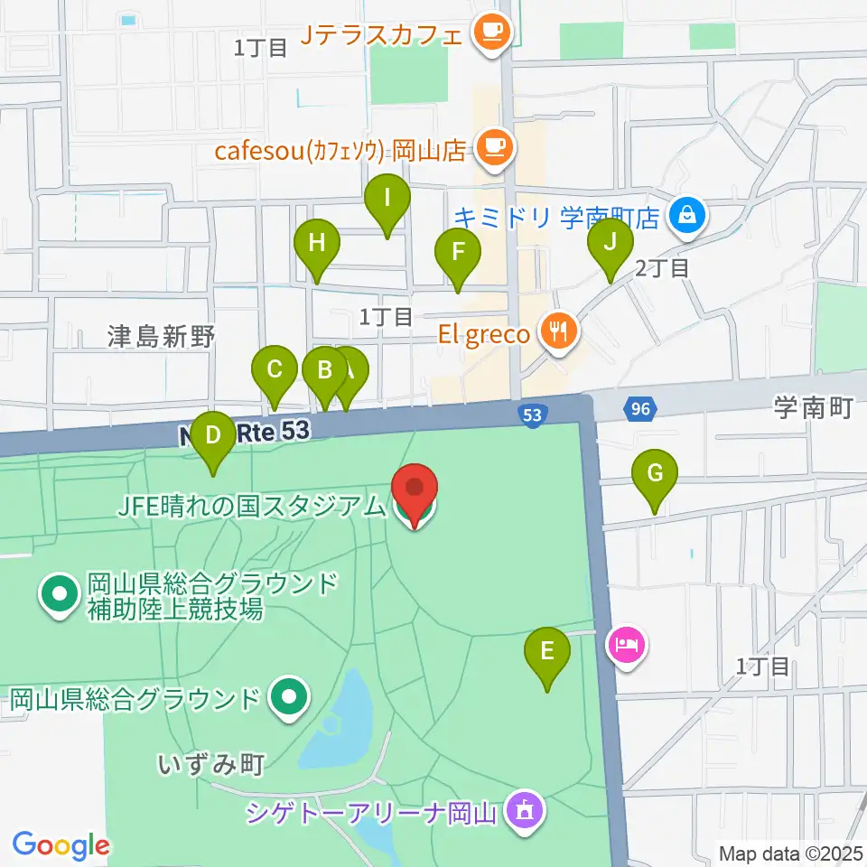 JFE晴れの国スタジアム周辺の駐車場・コインパーキング一覧地図