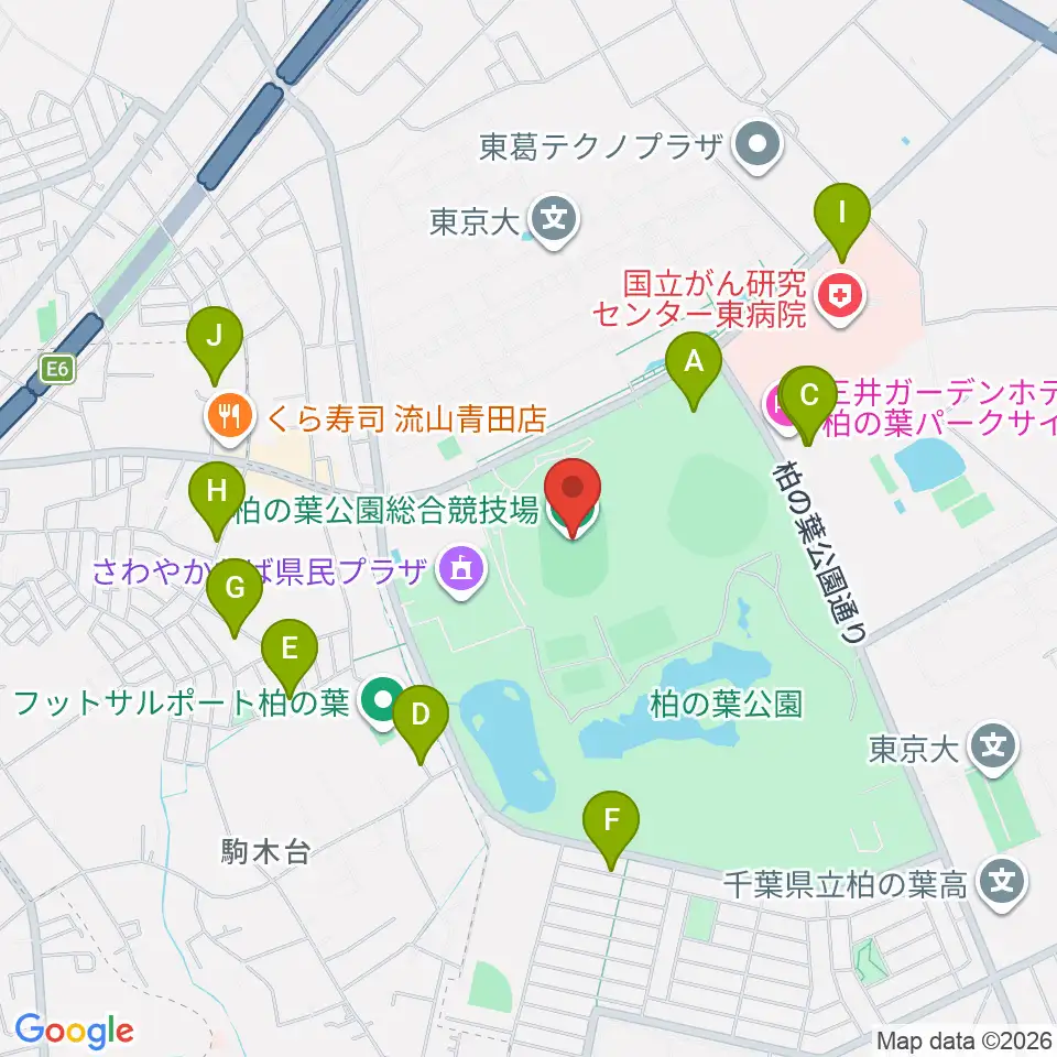 柏の葉公園総合競技場周辺の駐車場・コインパーキング一覧地図