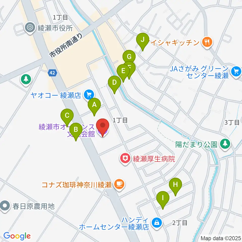 綾瀬市オーエンス文化会館周辺の駐車場・コインパーキング一覧地図