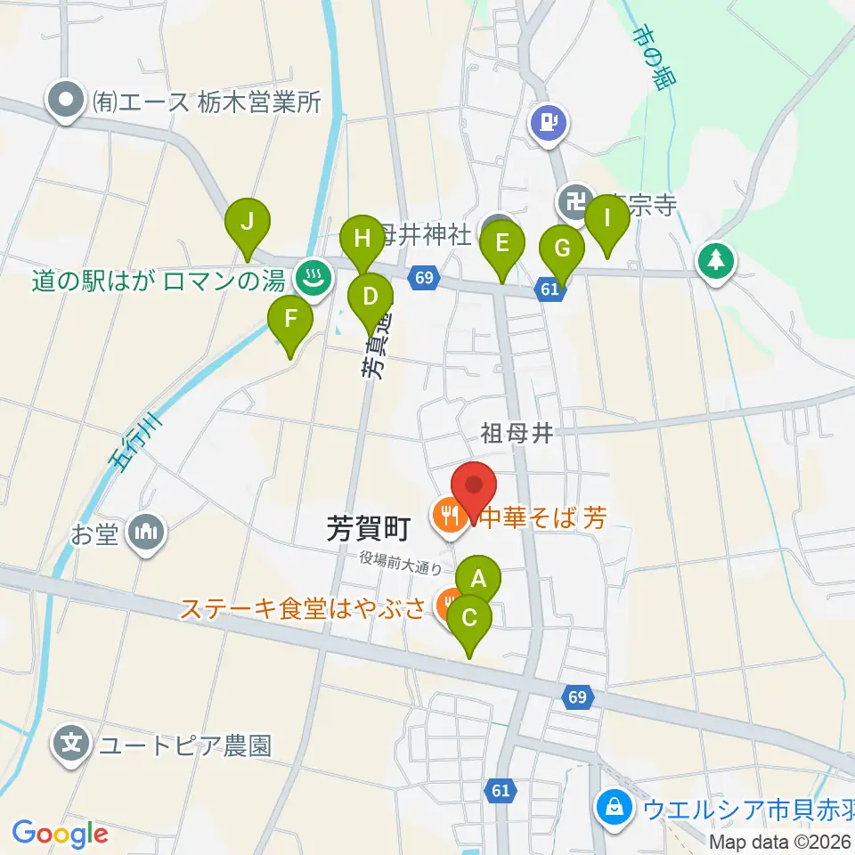 芳賀町民会館周辺の駐車場・コインパーキング一覧地図