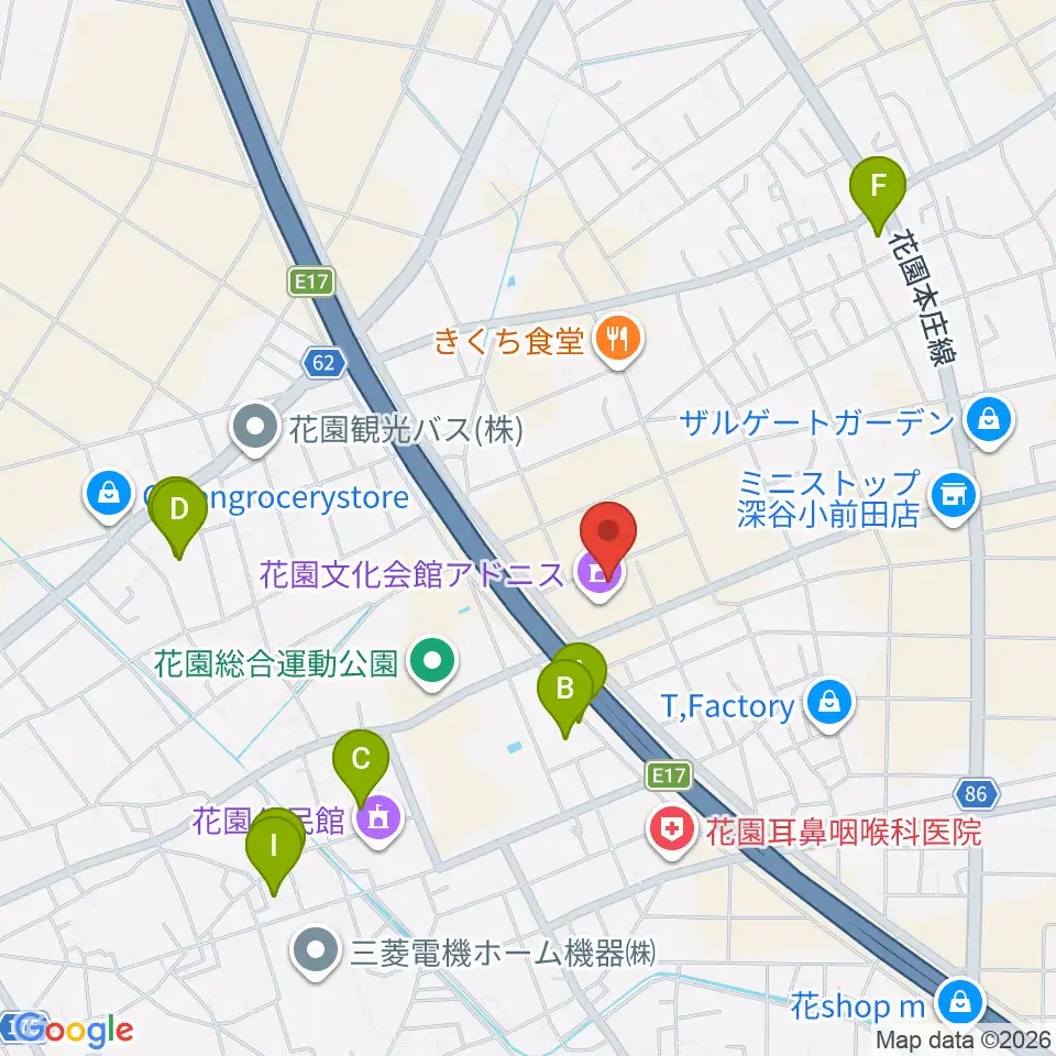 深谷市花園文化会館アドニス周辺の駐車場・コインパーキング一覧地図