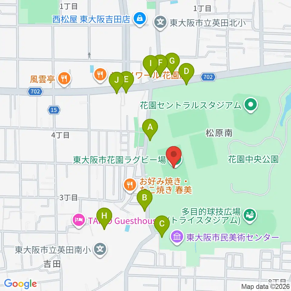 東大阪市花園ラグビー場周辺の駐車場・コインパーキング一覧地図