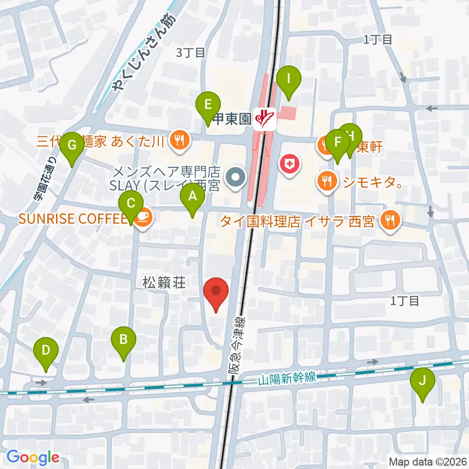 甲東園スタジオバードランド周辺の駐車場・コインパーキング一覧地図