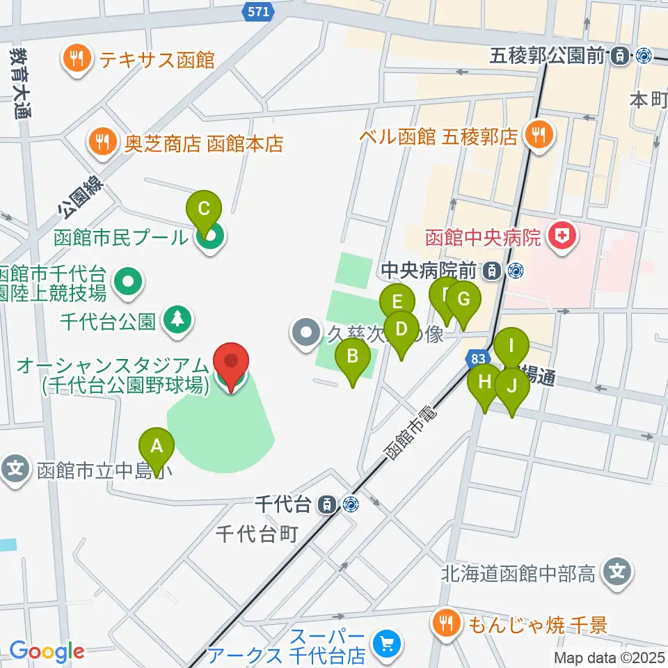 テーオーオーシャンスタジアム函館周辺の駐車場・コインパーキング一覧地図