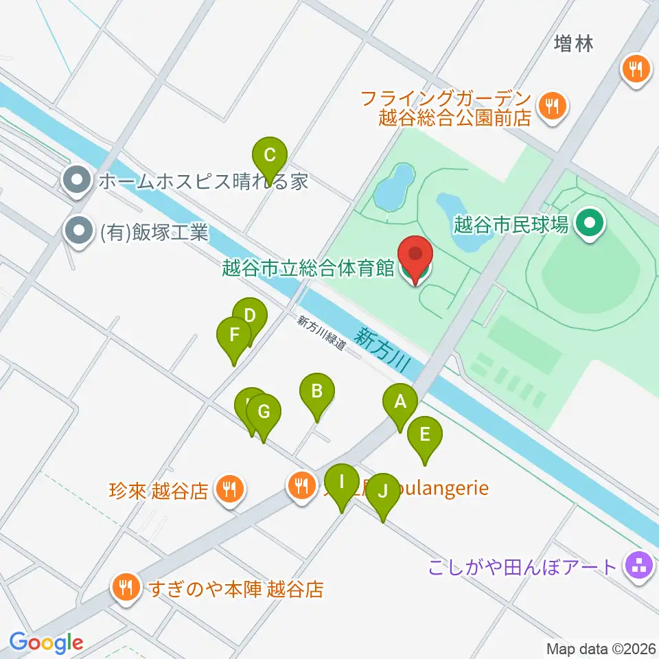 越谷市立総合体育館周辺の駐車場・コインパーキング一覧地図