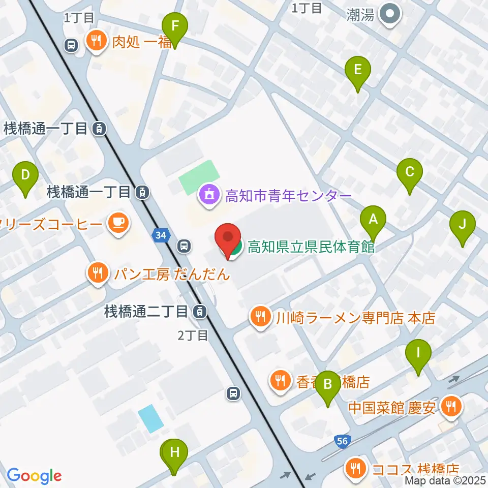 高知県立県民体育館周辺の駐車場・コインパーキング一覧地図