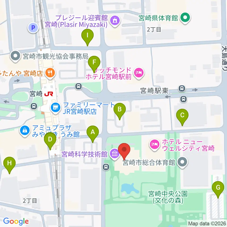 宮崎科学技術館周辺の駐車場・コインパーキング一覧地図