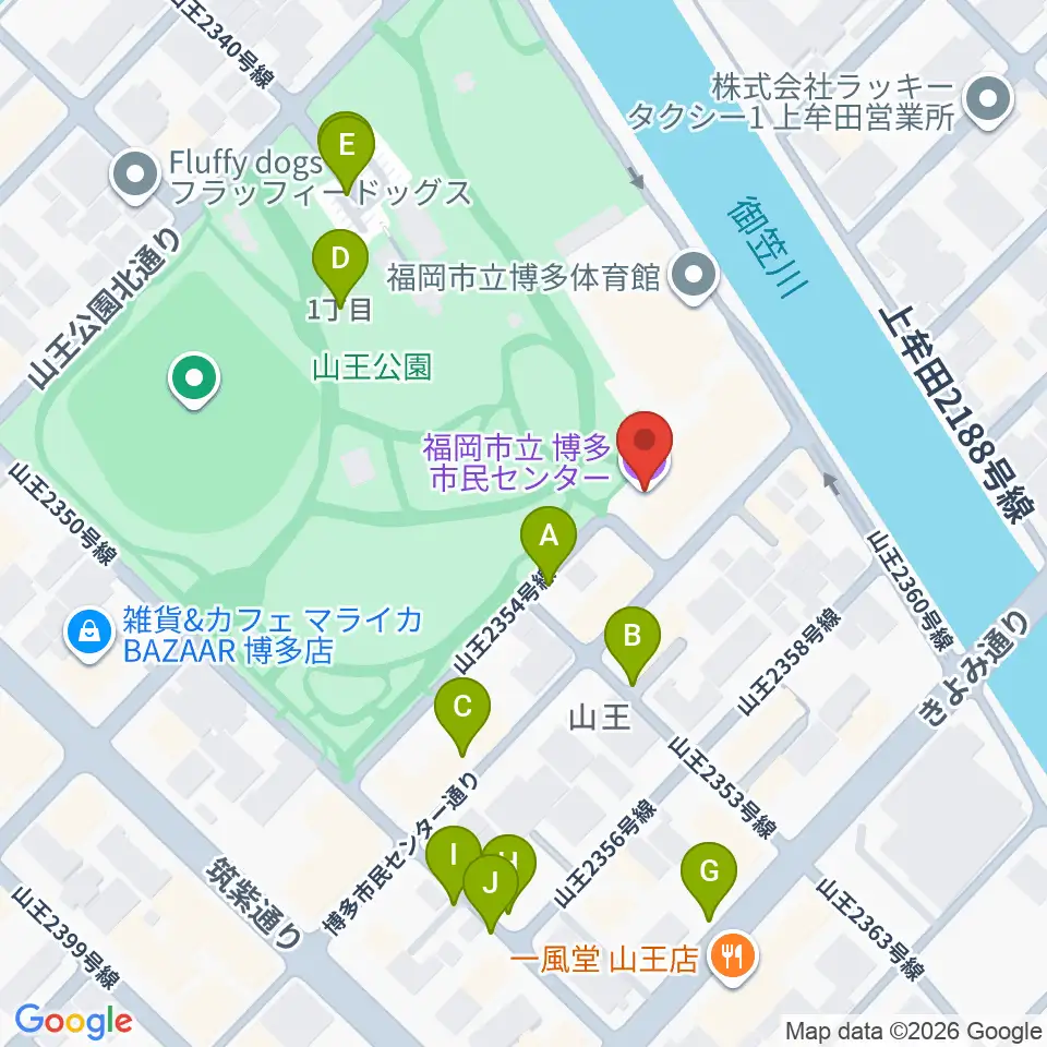 福岡市立博多市民センター周辺の駐車場・コインパーキング一覧地図