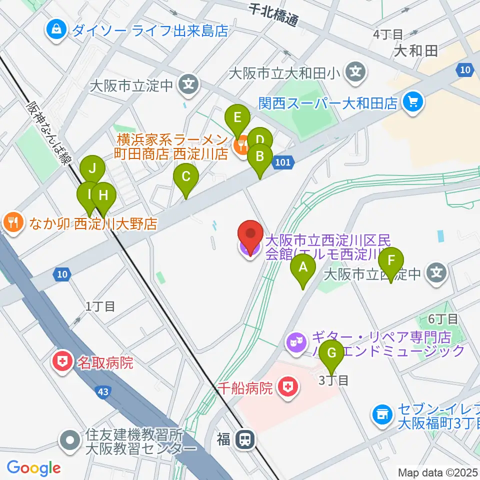西淀川区民会館(エルモ西淀川)周辺の駐車場・コインパーキング一覧地図