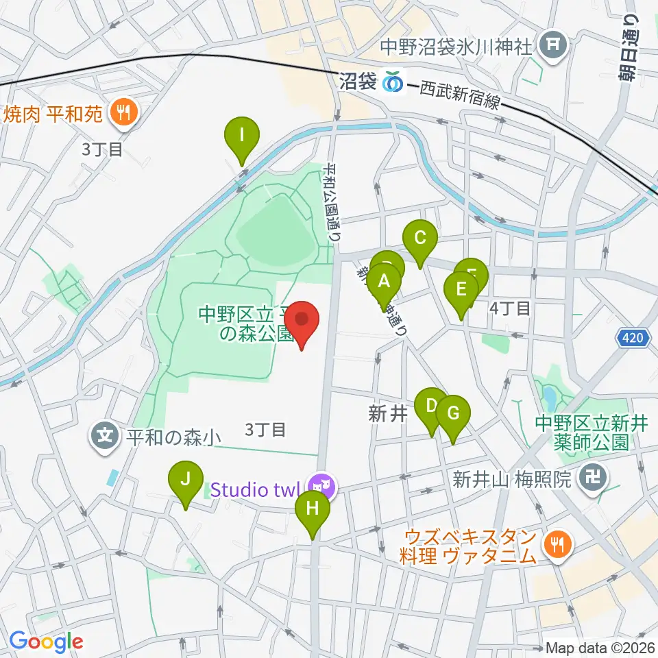 中野区立総合体育館周辺の駐車場・コインパーキング一覧地図