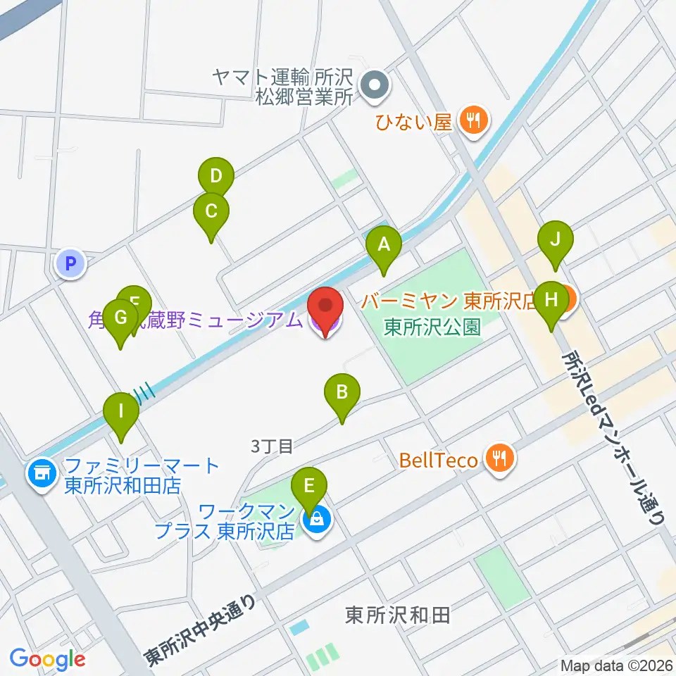 角川武蔵野ミュージアム周辺の駐車場・コインパーキング一覧地図
