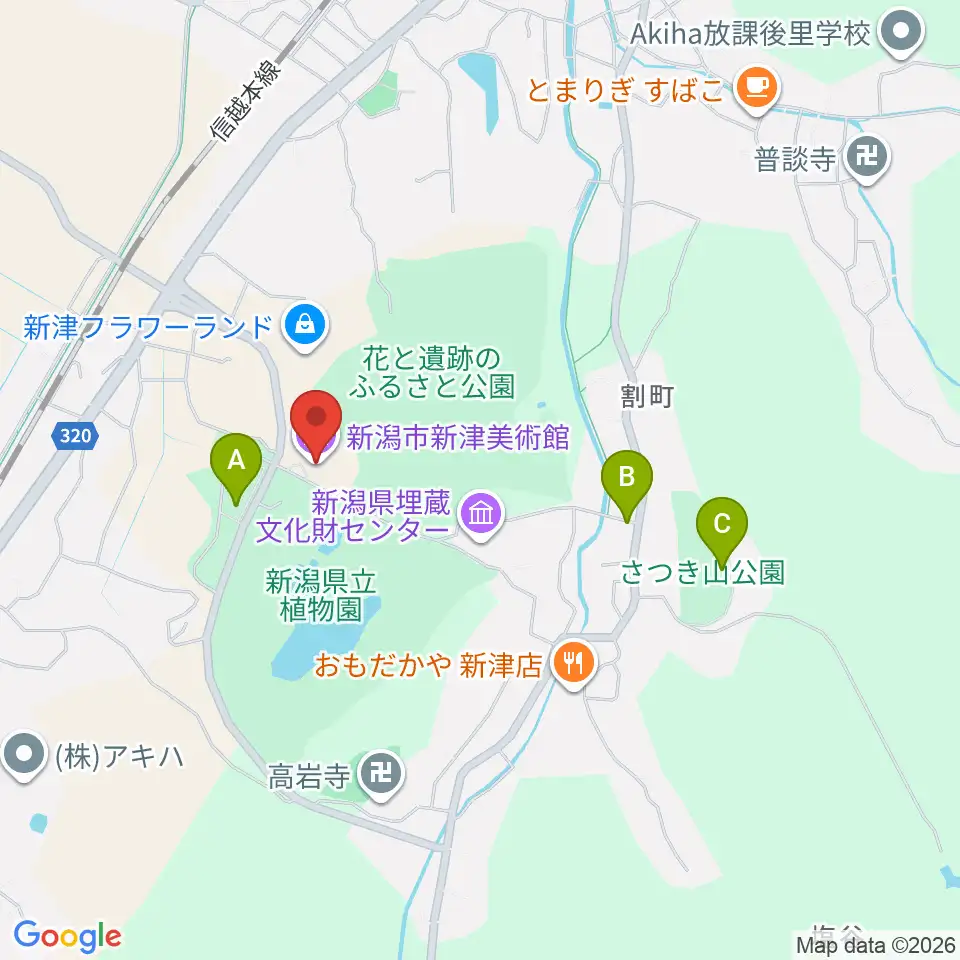 新潟市新津美術館周辺の駐車場・コインパーキング一覧地図