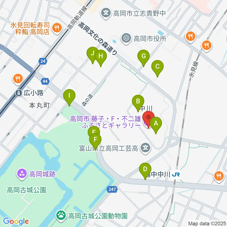 高岡市美術館周辺の駐車場・コインパーキング一覧地図