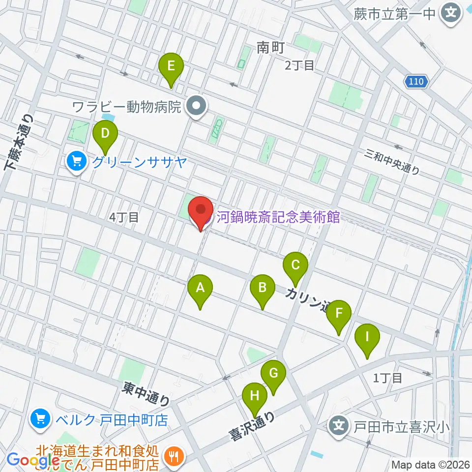 河鍋暁斎記念美術館周辺の駐車場・コインパーキング一覧地図
