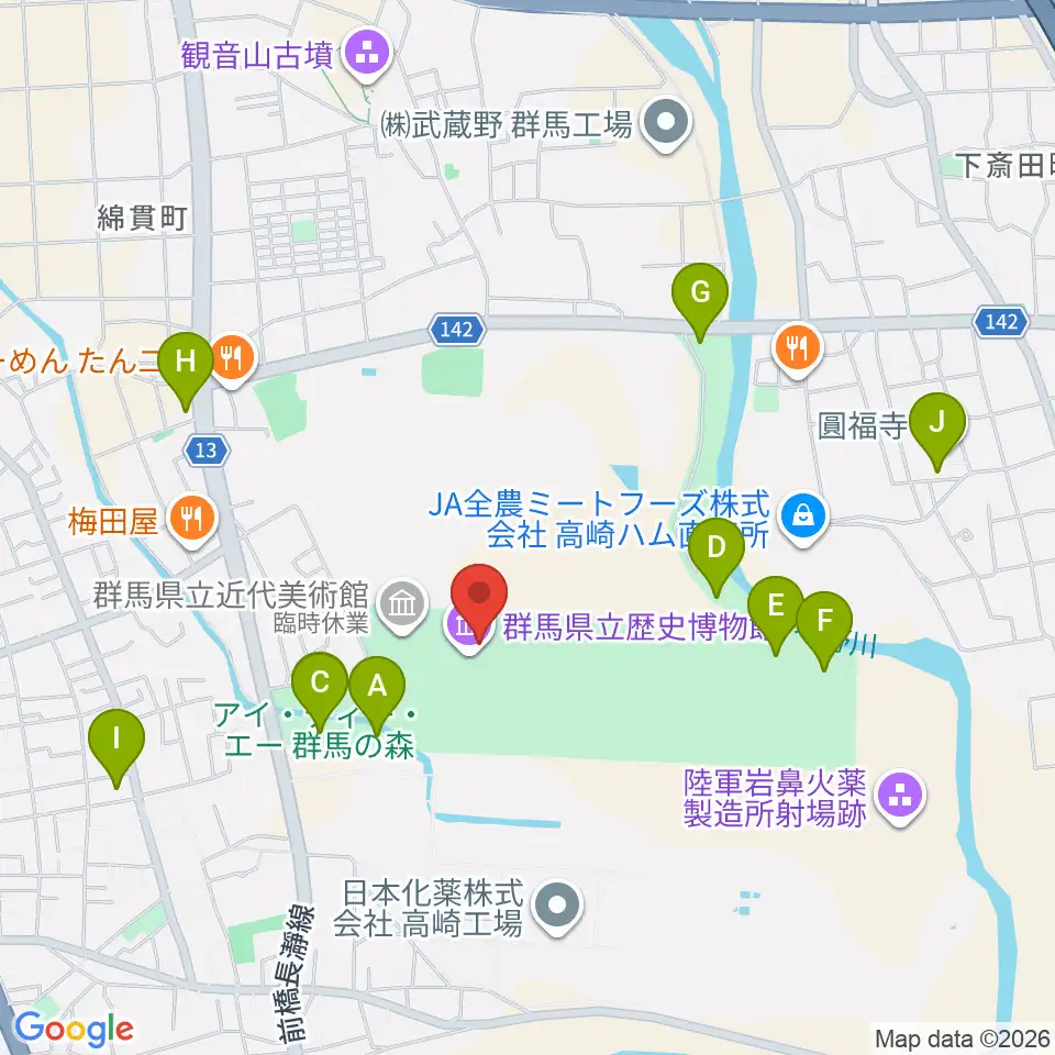 群馬県立歴史博物館周辺の駐車場・コインパーキング一覧地図