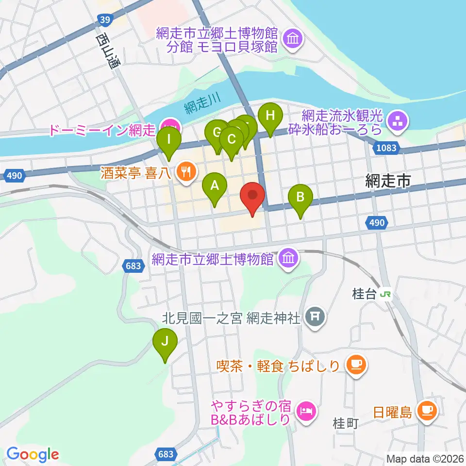 網走市立美術館周辺の駐車場・コインパーキング一覧地図