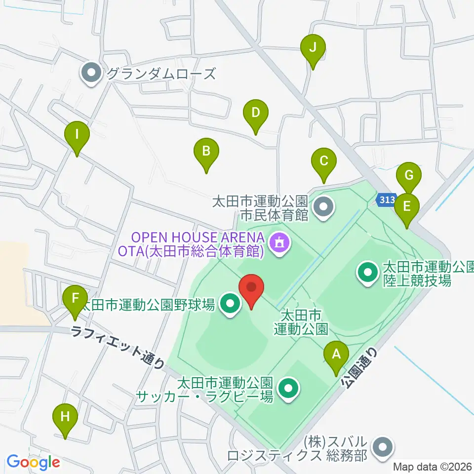 太田市運動公園野球場周辺の駐車場・コインパーキング一覧地図