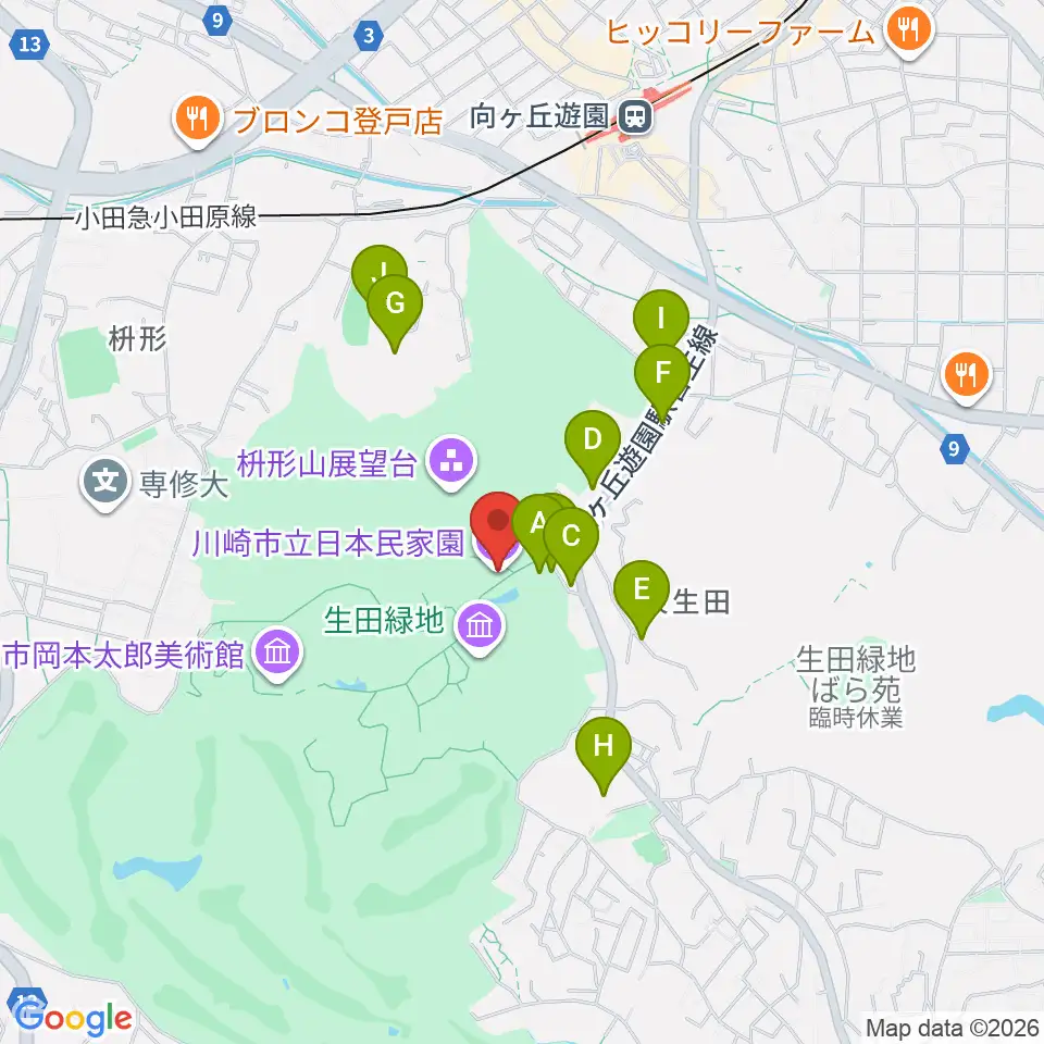 川崎市立日本民家園周辺の駐車場・コインパーキング一覧地図