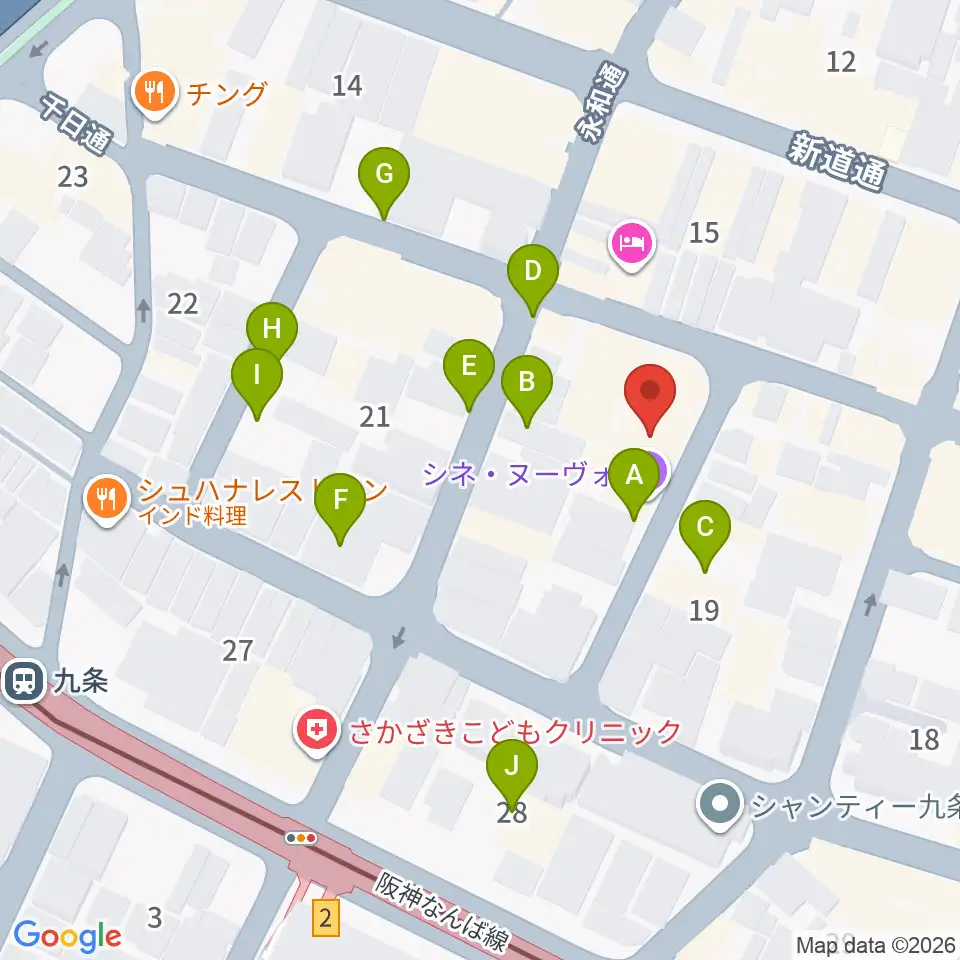 シネ・ヌーヴォ周辺の駐車場・コインパーキング一覧地図