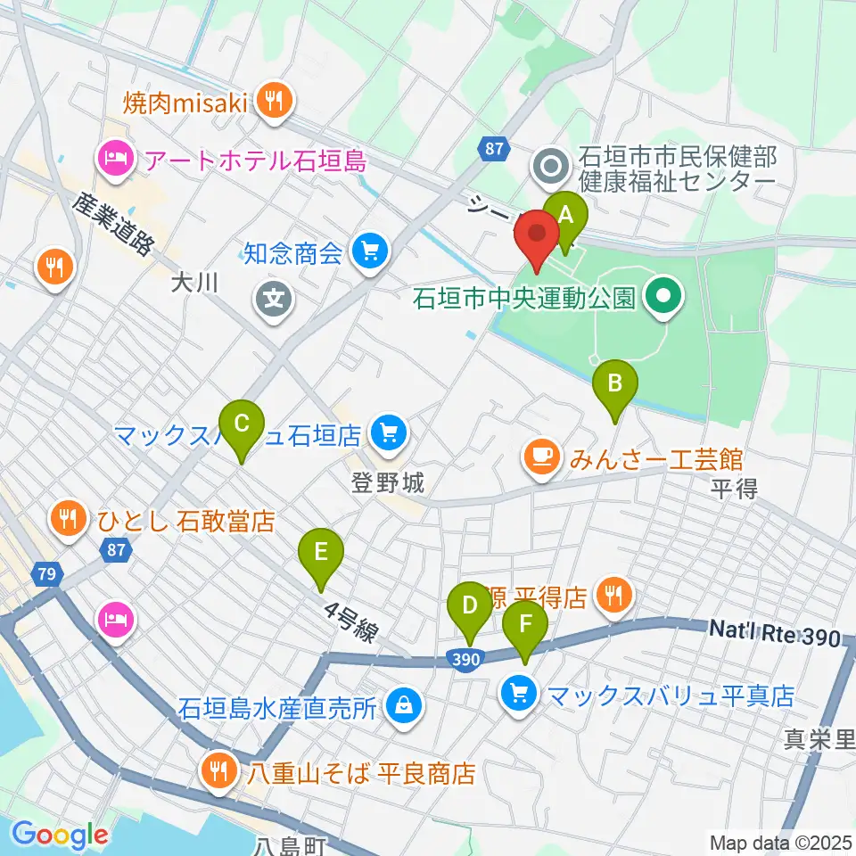 石垣市中央運動公園野球場周辺の駐車場・コインパーキング一覧地図