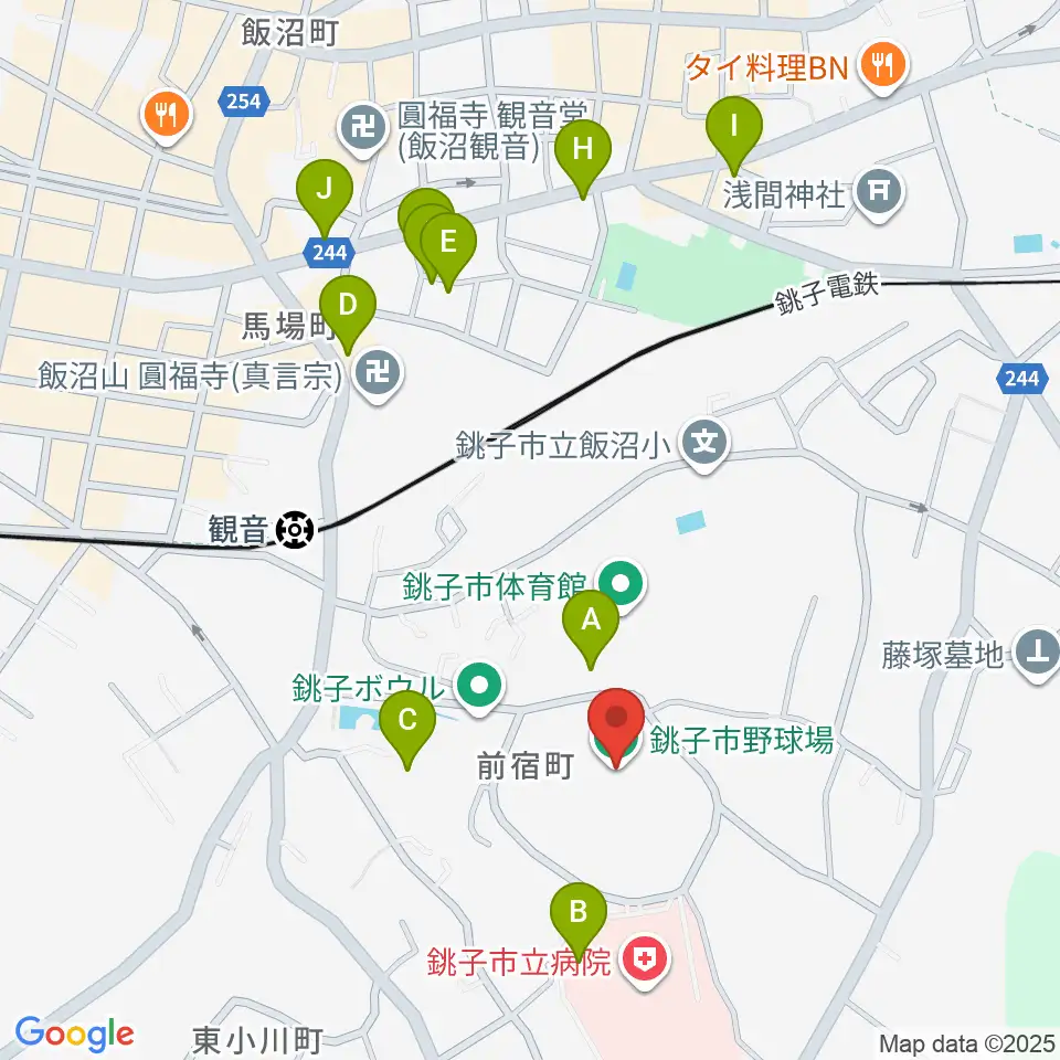 銚子市野球場周辺の駐車場・コインパーキング一覧地図