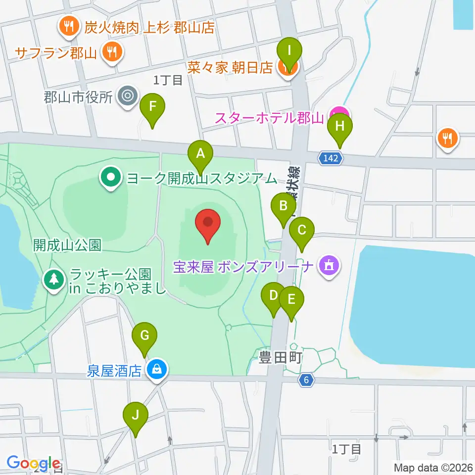 郡山ヒロセ開成山陸上競技場周辺の駐車場・コインパーキング一覧地図