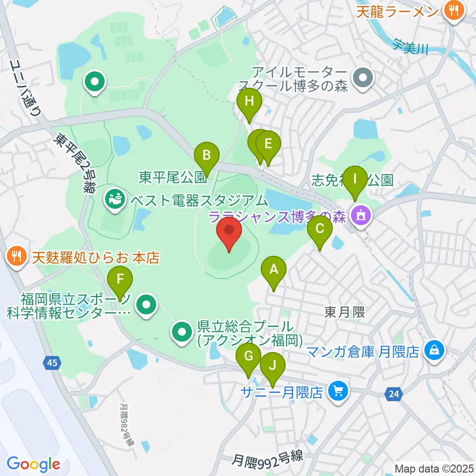 東平尾公園博多の森陸上競技場周辺の駐車場・コインパーキング一覧地図