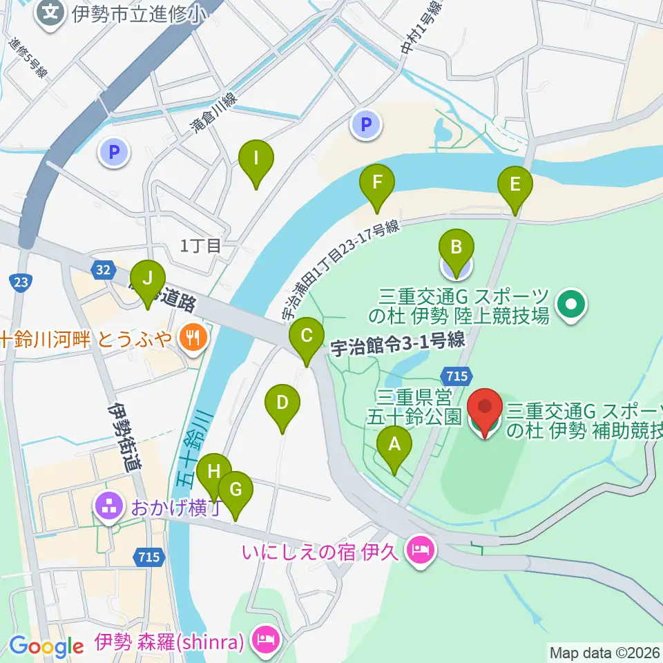 三重交通Gスポーツの杜伊勢第二陸上競技場周辺の駐車場・コインパーキング一覧地図