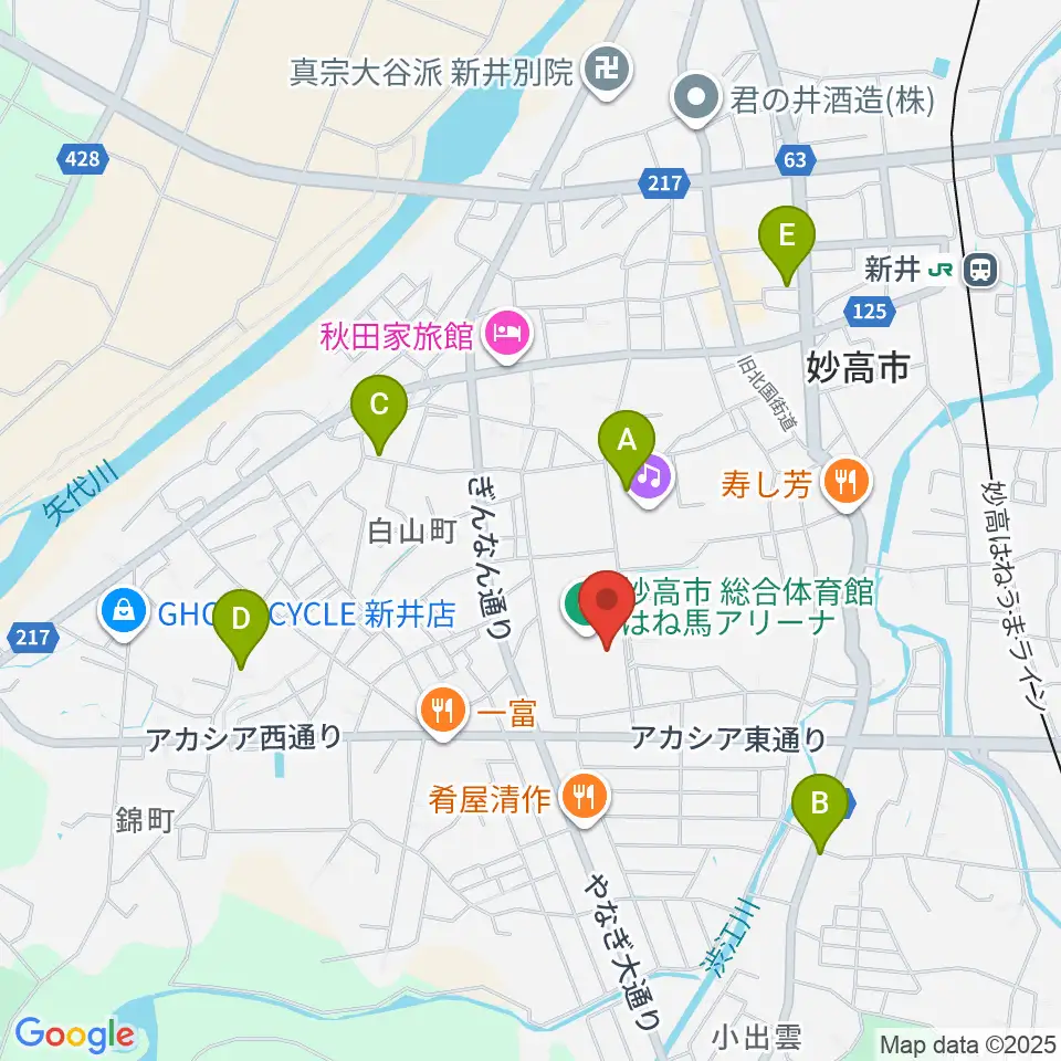 妙高市総合体育館はね馬アリーナ周辺の駐車場・コインパーキング一覧地図