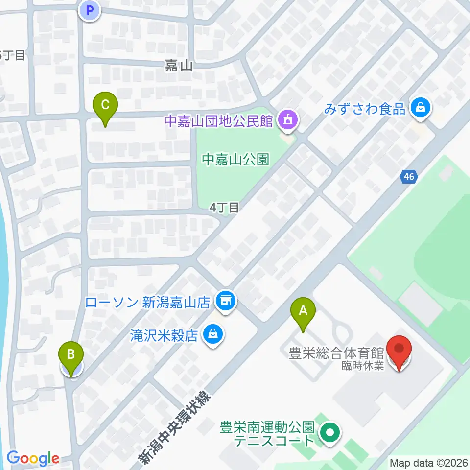 新潟市豊栄総合体育館周辺の駐車場・コインパーキング一覧地図