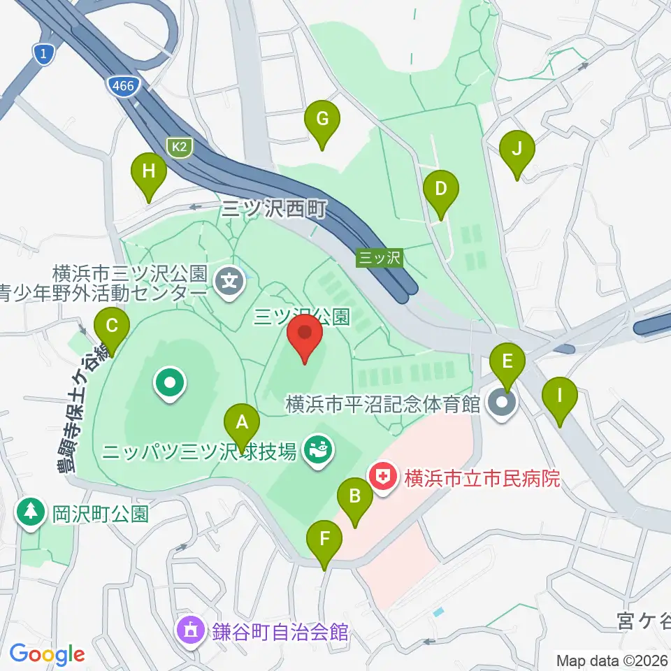 三ツ沢公園補助陸上競技場周辺の駐車場・コインパーキング一覧地図