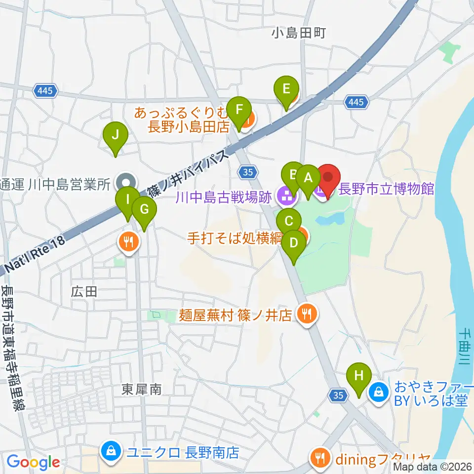 長野市立博物館周辺の駐車場・コインパーキング一覧地図